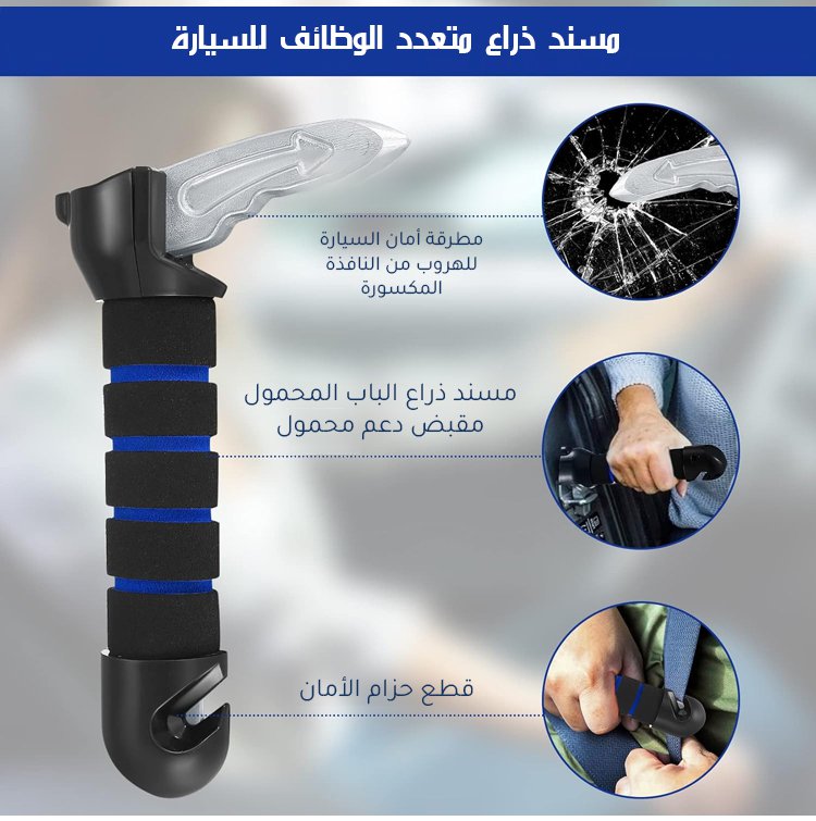 【ثلاثة في واحد متعدد الوظائف】 مطرقة أمان بمقبض باب السيارة