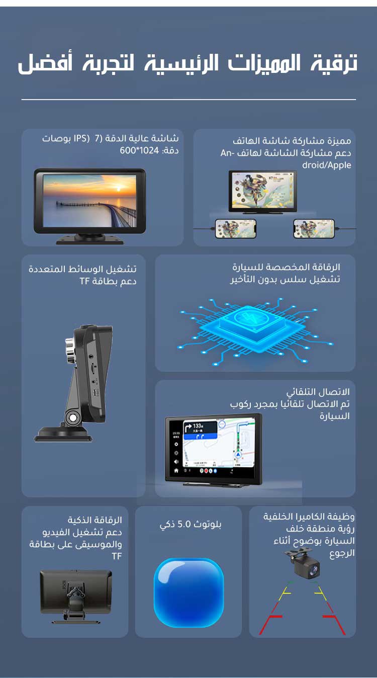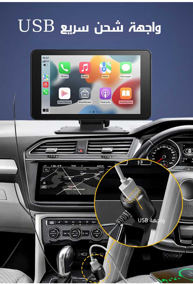 شاشة محمولة عالية الدقة 4K للسيارات ذات مميزة دعم لاسلكي لنظام CarPlay