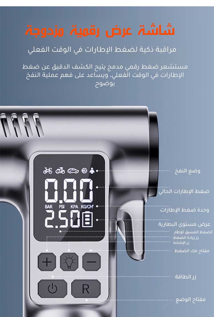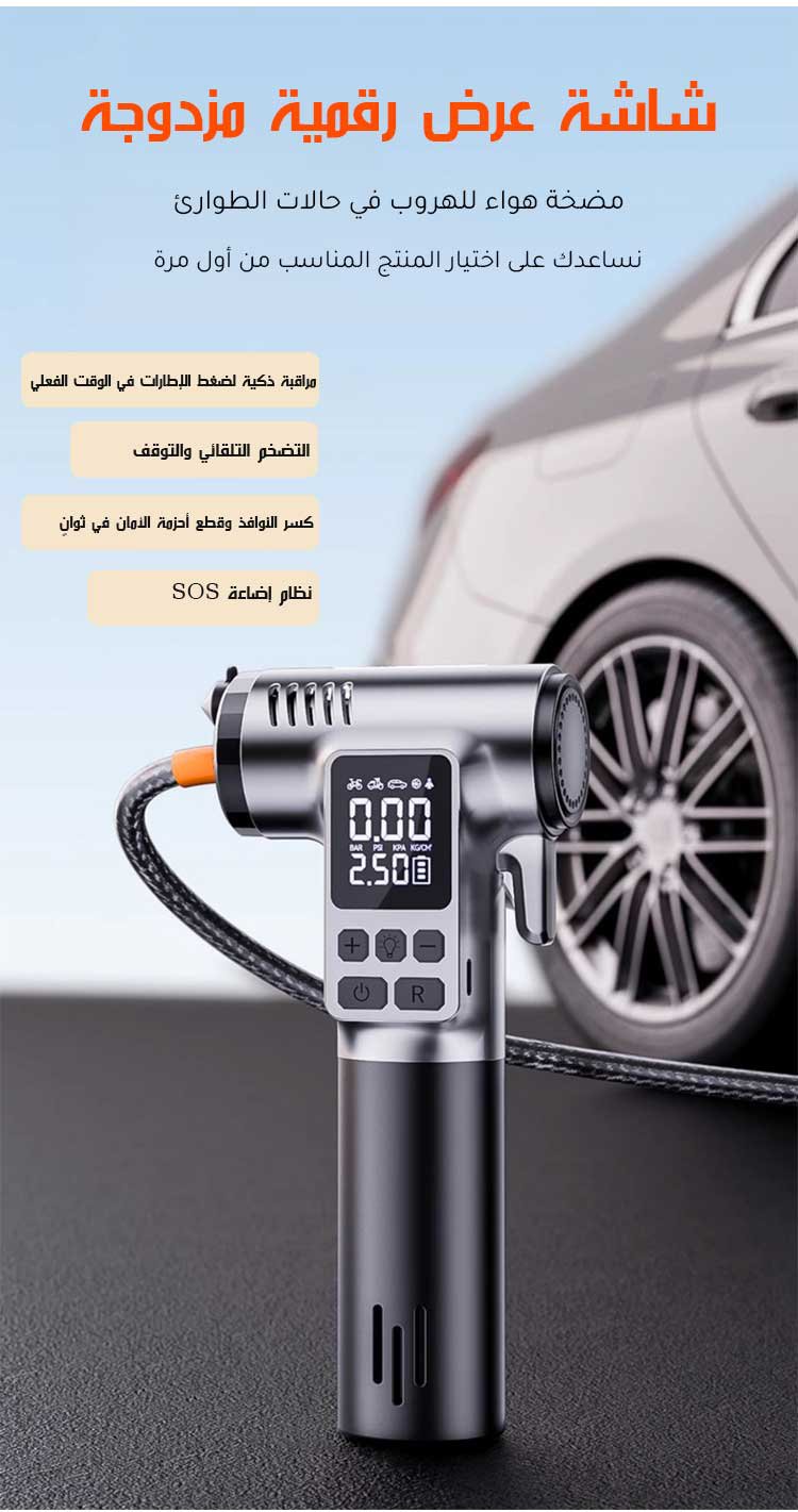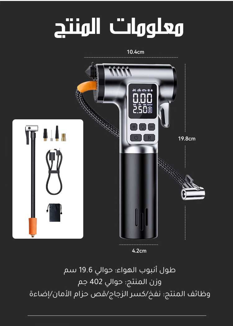 مضخة هواء لاسلكية ومطرقة أمان للسيارة 2 في 1