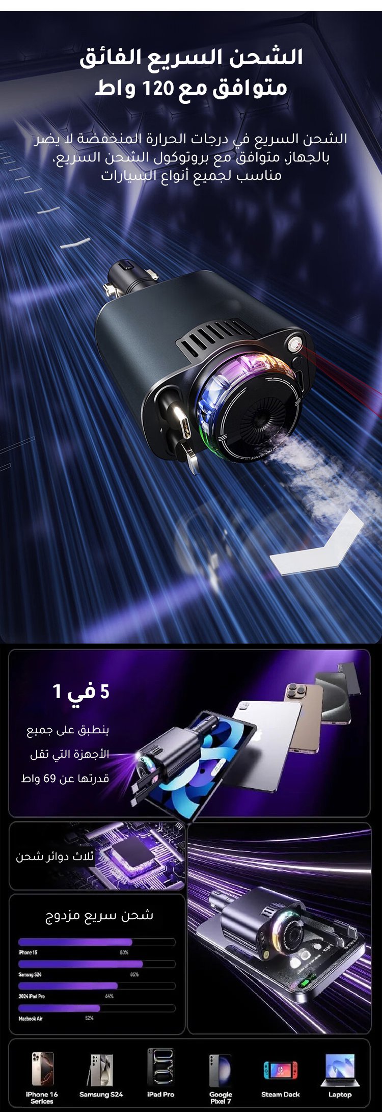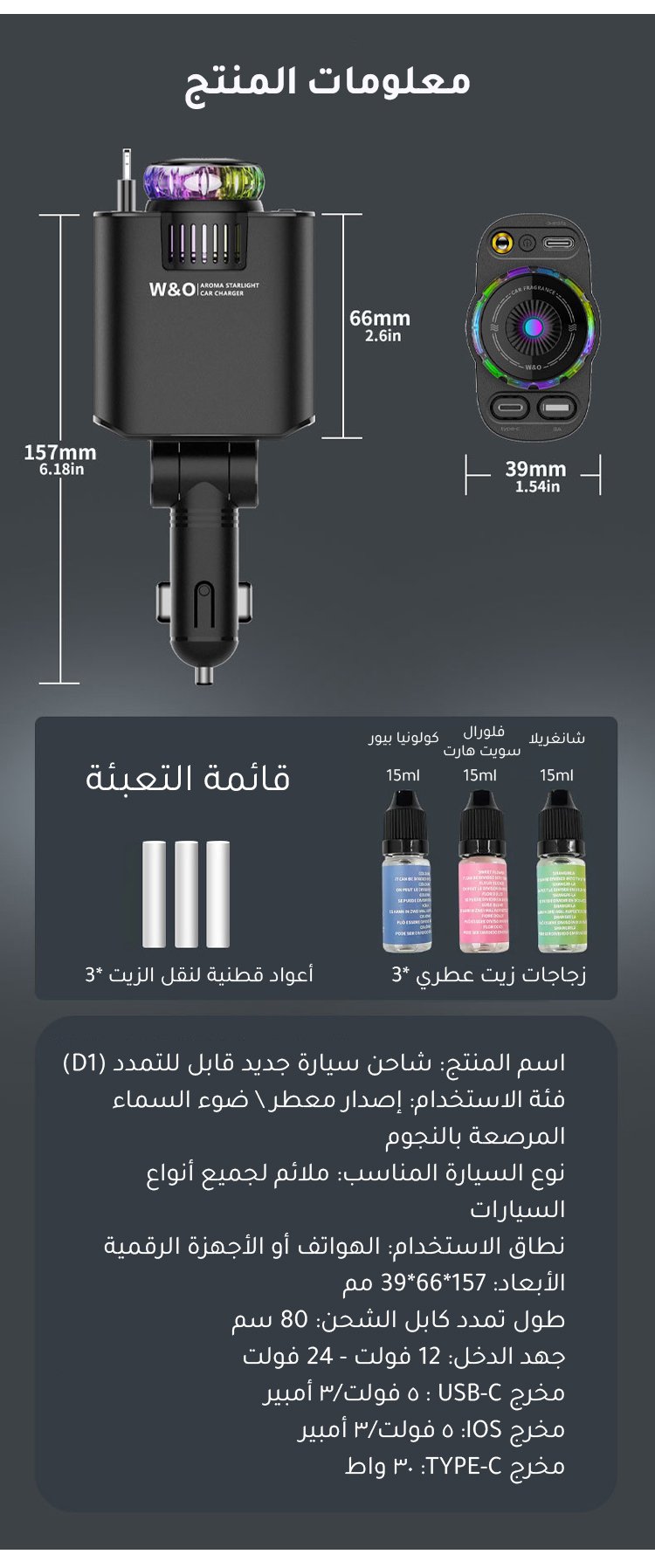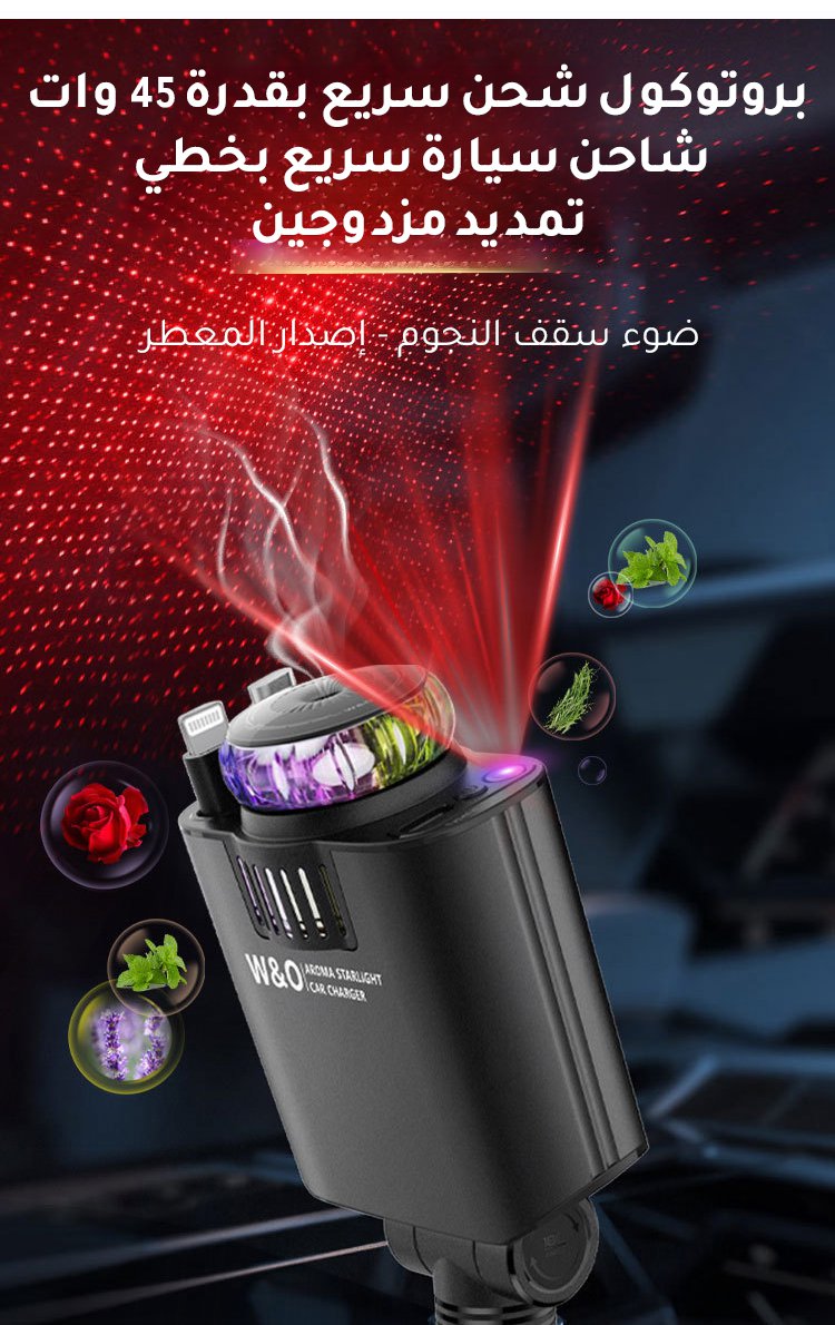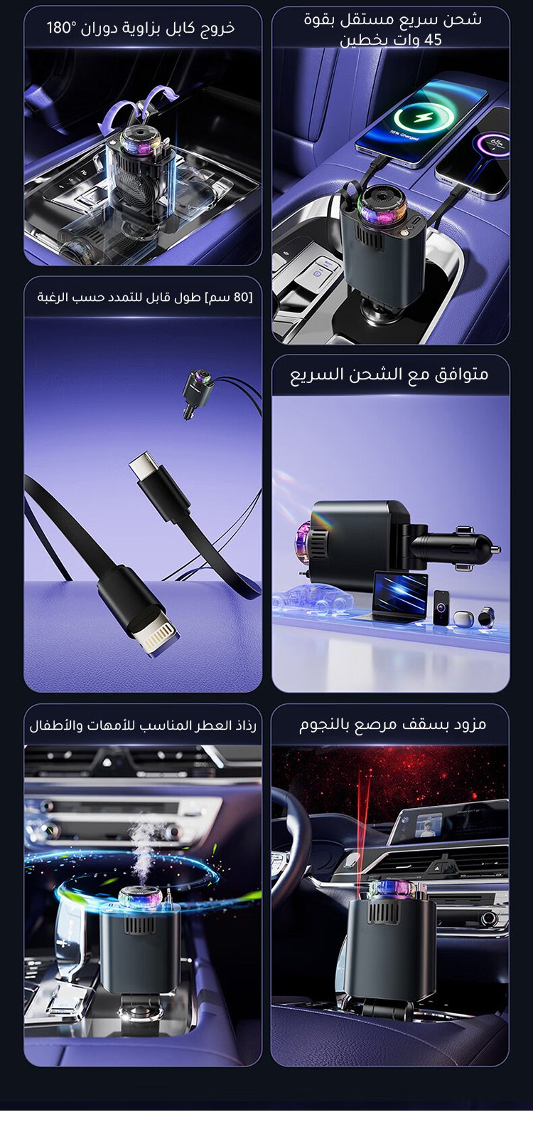 شاحن سيارة قابل للتمدد 5 في 1 مع رائحة عطرية وضوء النجوم