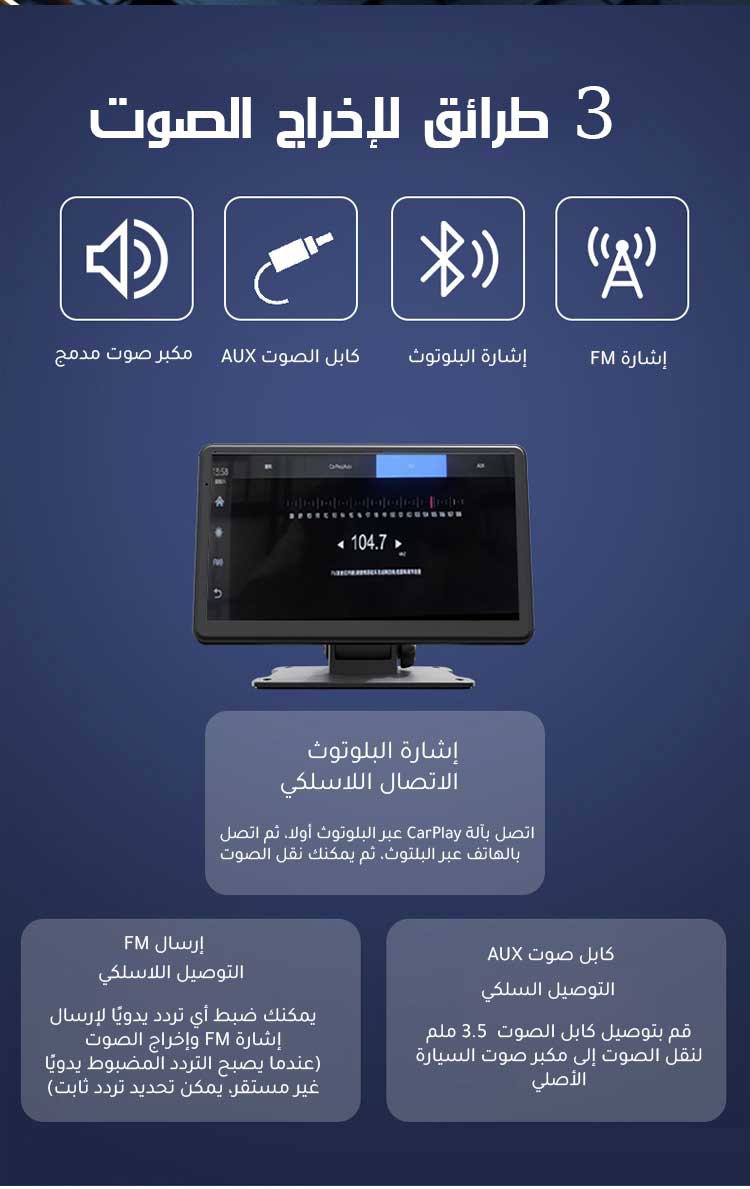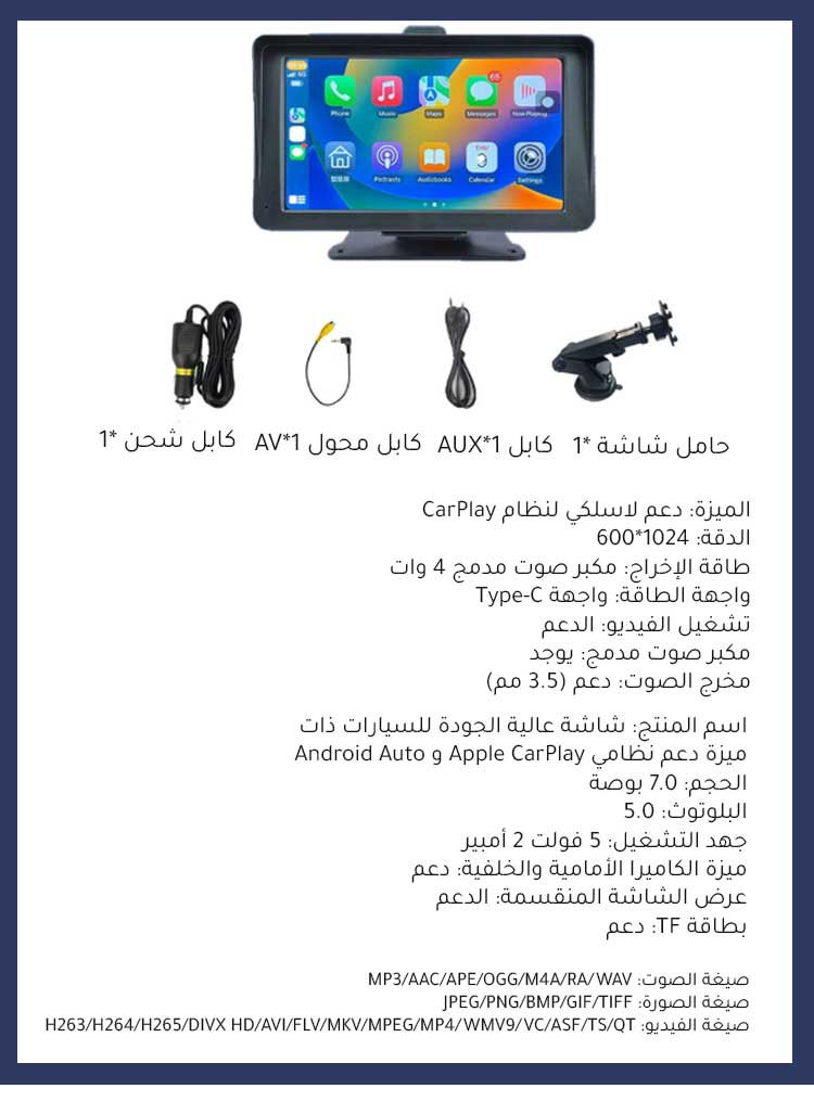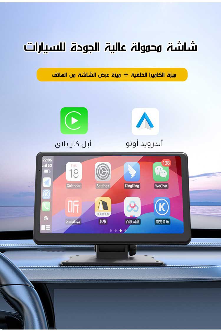 شاشة محمولة عالية الدقة 4K للسيارات ذات مميزة دعم لاسلكي لنظام CarPlay